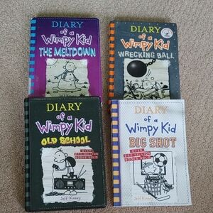 Four Diary of a Wimpy Kid Book Lot. 3 Hardcover, 1 Softcover – 3 First Editions! Set of 4 Diary of a Wimpy Kid books by Jeff Kinney – perfect for young readers or collectors! Includes three first editions and three hardcovers. Included: Old School Hardcover in Excellent condition. Big Shot Softcover, 1st Edition– Like new. The Meltdown Hardcover, Ex-Library Fair condition, library stamps and stickers and cover wear. Wrecking Ball Hardcover 1st Edition Very good condition. From a smoke-free, pet-friendly home. Bundle and save on shipping! New to poshmark? Sign up with my code Jstewart261 to receive $15 off your first purchase.