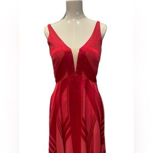 Adan Mattox Sleeves Dbl V Burn Hi-L Gown in Rub, size 8 NWT