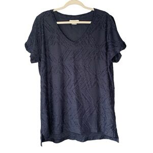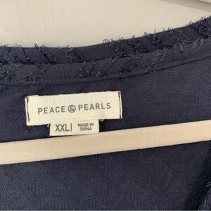 Peace & Pearls navy blue Aztec eyelash relief short sleeve vneck top. Size XXL
