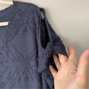 Peace & Pearls navy vneck Aztec eyelash relief cold shoulder short sleeve top. Tags: comfy, relaxed fit, everyday, neutral. Size XXL
