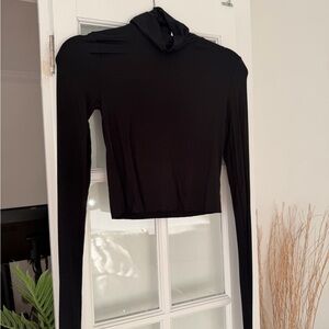 ÉTERNE's Cropped Fitted Turtleneck Top is crafted from our butter-soft ribbed cotton modal blend, offering a slim fit and cropped length—a versatile essential for everyday wear.