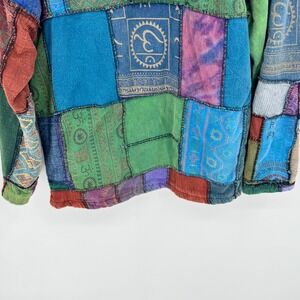Parava Clothing Patchwork Fleece Lined Zip Up Hoodie Boho Artwear Oversized M/L