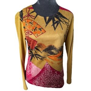 Vintage Y2K 90s Pierre Cardin Top S Artsy Crystal Embellished Asian Grunge