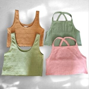 Textured crop tops in rusty brown, green and pink-All 4 as a bundle.