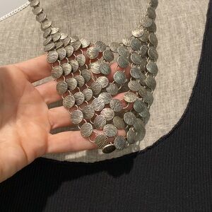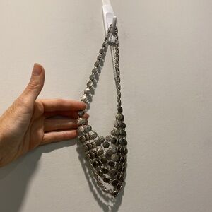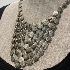 Silver Metal Statement Drop Necklace