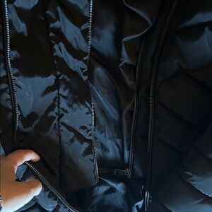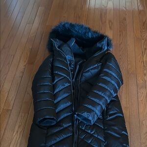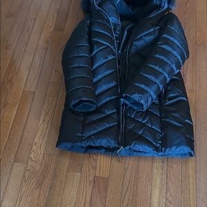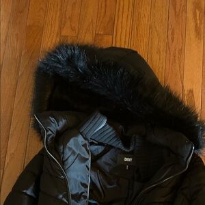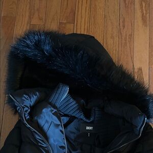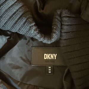 NWOT DKNY water-resistant puffer coat with a fixed bib