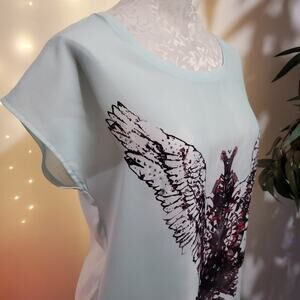 Rock & Republic Women's S Light Blue Mint Guitar Wing Rhinestone Flowy Top