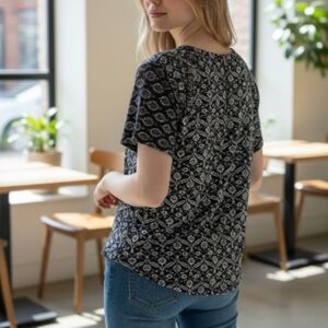 SALE EUC Lucky Brand Sz. M/M Blue/White Floral Short Sleeve Pullover Top.