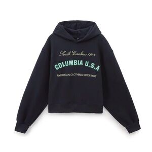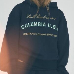 Dark blue hoodie with Columbia USA print, hardly worn, great condition!