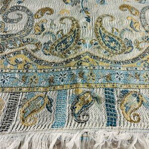 Pashmina Elegant Blue and Gold Patterned Scarf with short fringe New