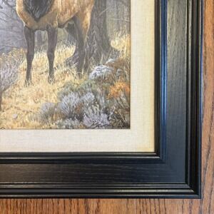 Elk Print Art Foggy Mountain by Bruce Miller Framed Numbered Signed 17.5"x 14.5"