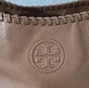 Tory Burch Royal Tan Pebbled Leather Marion East-West Tote Bag