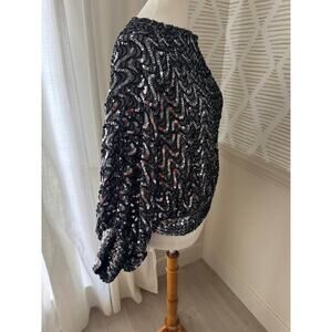 Sakowitz Women’s Medium Vintage Black & Silver Sequin Balloon Sleeve Stretchy Top