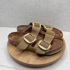Birkenstock Arizona Brown Tan Leather Big Gold Buckle Slide Sandals Sz 41 10 8