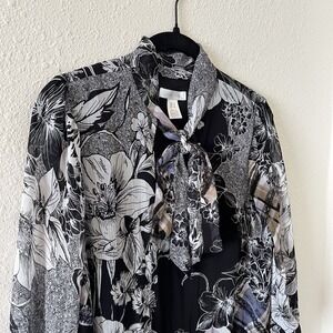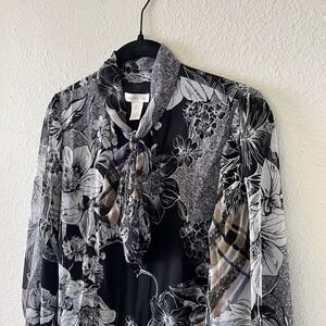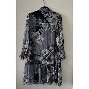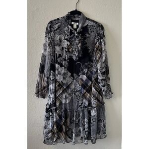 London Times Women's Dress Sz 8 Tartan Floral Long Sleeve Smock Tiered Tie Neck