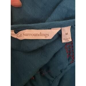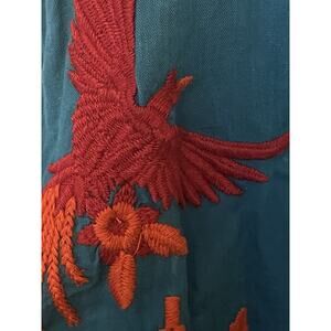 Soft Surroundings Bird Embroidered Midi Dress •M• Aztec Boho Kaftan Tassel Teal