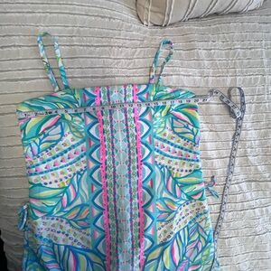 Lilly Pulitzer Tropical Print Romper in Pink and Blue