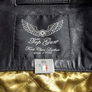 Top Gun Men’s Leather Bomber Jacket Heritage Vintage 80s Retro Aviator Sz 3XL