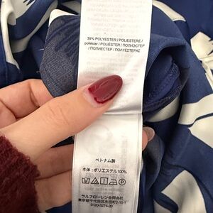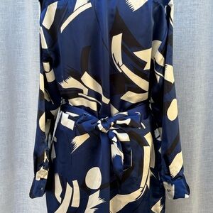 Lauren Ralph Lauren black label blue white black shapes abstract, button down long sleeve dress with matching belt