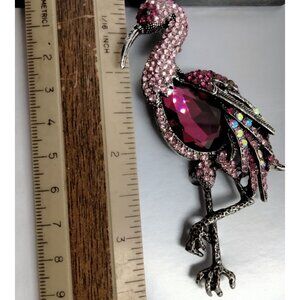 Pink Flamingo Rhinestone Brooch Statement Pin Large