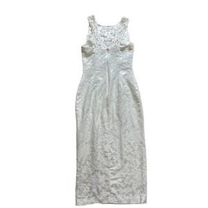 Romantic White Floral Embroidered Lace Dress Size 2 XS Midi Bridal Y2K Formal