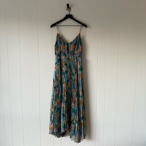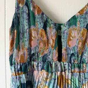 ASTR Loralee Pleated Floral Maxi Dress Green Blue Gold