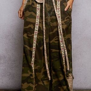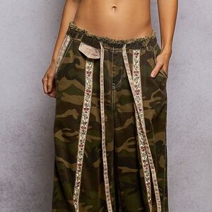 New Pol Clothing Patchwork Floral Camo Jeans Pants Cargo Relaxed Wide Leg