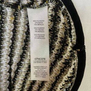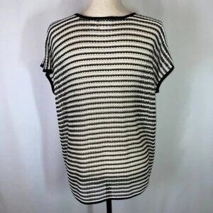 Chico's Loose Knit Metallic Striped Sweater Short Sleeves Relaxed Fit Size L