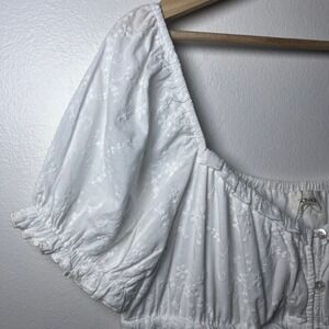 Sonmer White Mary Eyelet Dress Cotton Button Front Puff Sleeve Maxi size XL NWT