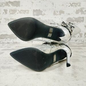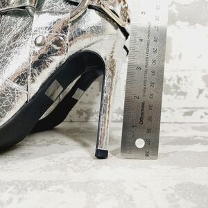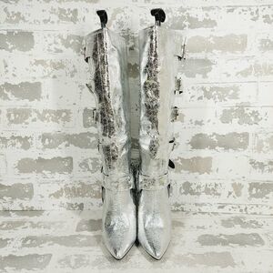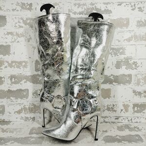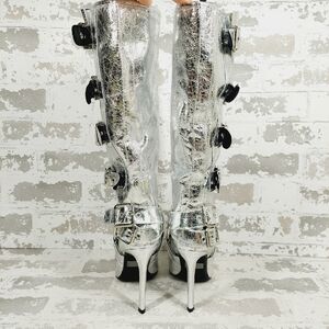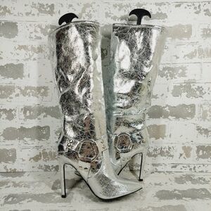New Wild Diva Look At Me Silver Faux Leather High Heel Harness Knee Boots K759