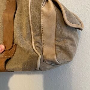 The perfect everyday bag to carry everything you need, this cool canvas tote features a slouchy design with a foldover top and leather strap details.item has natural fluctuations in color due to the staining process