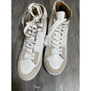 ALOHAS LEATHER HIGH TOP SNEAKER CREAM TAN MAROON LACE UP Women NWOB Size 8