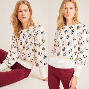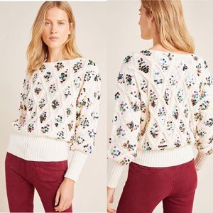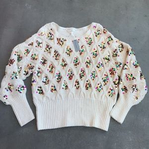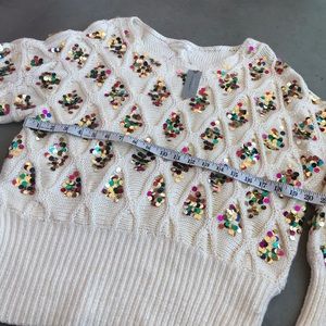 Chic white sweater with colorful sequins. Perfect for adding sparkle to any outfit. Large petite