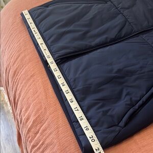 Stylish Lacoste puffer vest in navy blue. Features a sleek design with front pockets and zip closure.