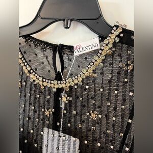 Brand new with tags REDValentino Rhinestone-Embellished Tulle Mini Dress in size 44. A chic and structured mini crafted in lightweight tulle with allover rhinestone detailing for a polished, high-impact look.
