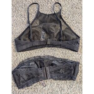 Victoria's Secret Black Lace Bralette Set Strappy Halter Bandeau Wireless S M