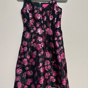 Lilly Pulitzer Leya Metallic Black and Pink Floral Mini Dress size 4