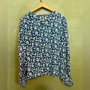 Ditzy Floral Blue Long Sleeve Blouse, Size Large