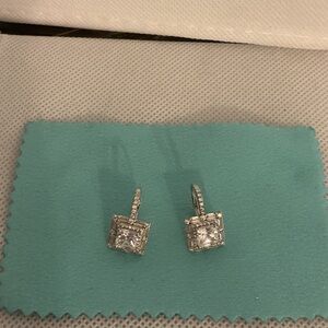 These elegant sterling silver princess cut with baguette stones drop earrings add a touch of sophistication to any outfit. Perfect for any occasion. The earrings measure about 3/4” in length and about 1/2” in width. These earrings are in good condition.