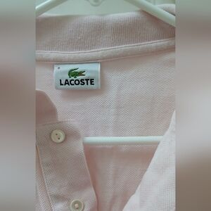 in perfect condition, smoke/pet free home. size US 6. light pink colour. Elevate your style with this Lacoste men's pink polo shirt. Perfect for casual outings, this shirt combines comfort and elegance.