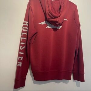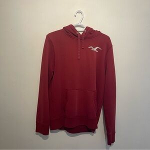 Classic maroon hoodie with kangaroo pocket. Features Hollister logo on chest. Ideal for everyday wear.