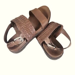 Brighton Hana Caramel Leather Celtic Knot Adorn 1" Heel Sandals Sz 8 1/2 M