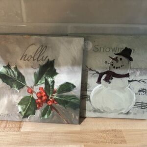Celebrate the season with this charming holiday canvas set featuring a vibrant holly design and a cheerful snowman. Perfect for adding a festive touch to your home decor. 9”