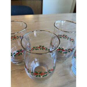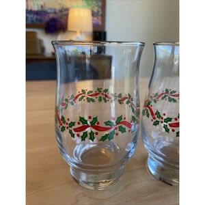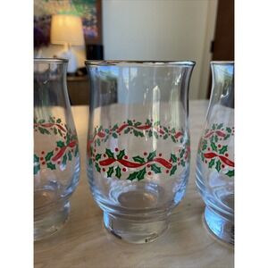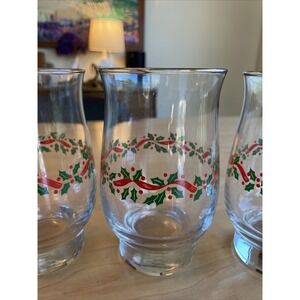 LOT OF 4 VINTAGE LIBBEY ARBY'S HOLLY RIBBONS GLASS TUMBLERS 5 1/4" Christmas Cup