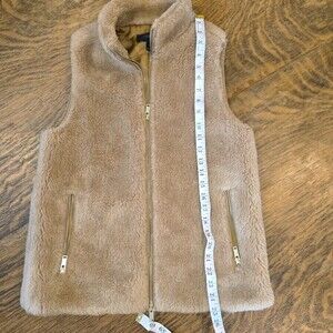 J. Crew Women’s Faux Fur Zip Vest Tan Camel Brown Size XS Gold Zipper
