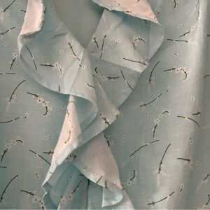 Vineyard Vines Ruffle-Neck Blouse Light Blue V neck