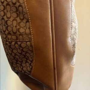 Elegant Coach hobo bag with a stylish pattern. Features a mix of tan and brown tones. Ideal for everyday use. Excellent condition.