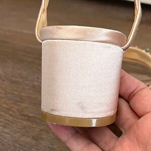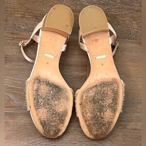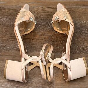 Elegant pink sandals with sparkling embellishments. Perfect for special occasions. Adjustable ankle strap for comfort.