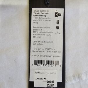 TUMI garment bag, tri fold garment bag, carry on garment bag, ballistic nylon luggage, luxury travel bag, business travel bag, suit garment bag, foldable garment bag, wedding travel bag