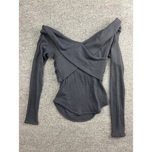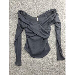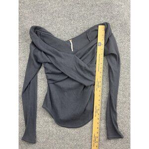 Free People Shirt Womens XS Gray Ribbed Off Shoulder Long Sleeve Stretch Top
